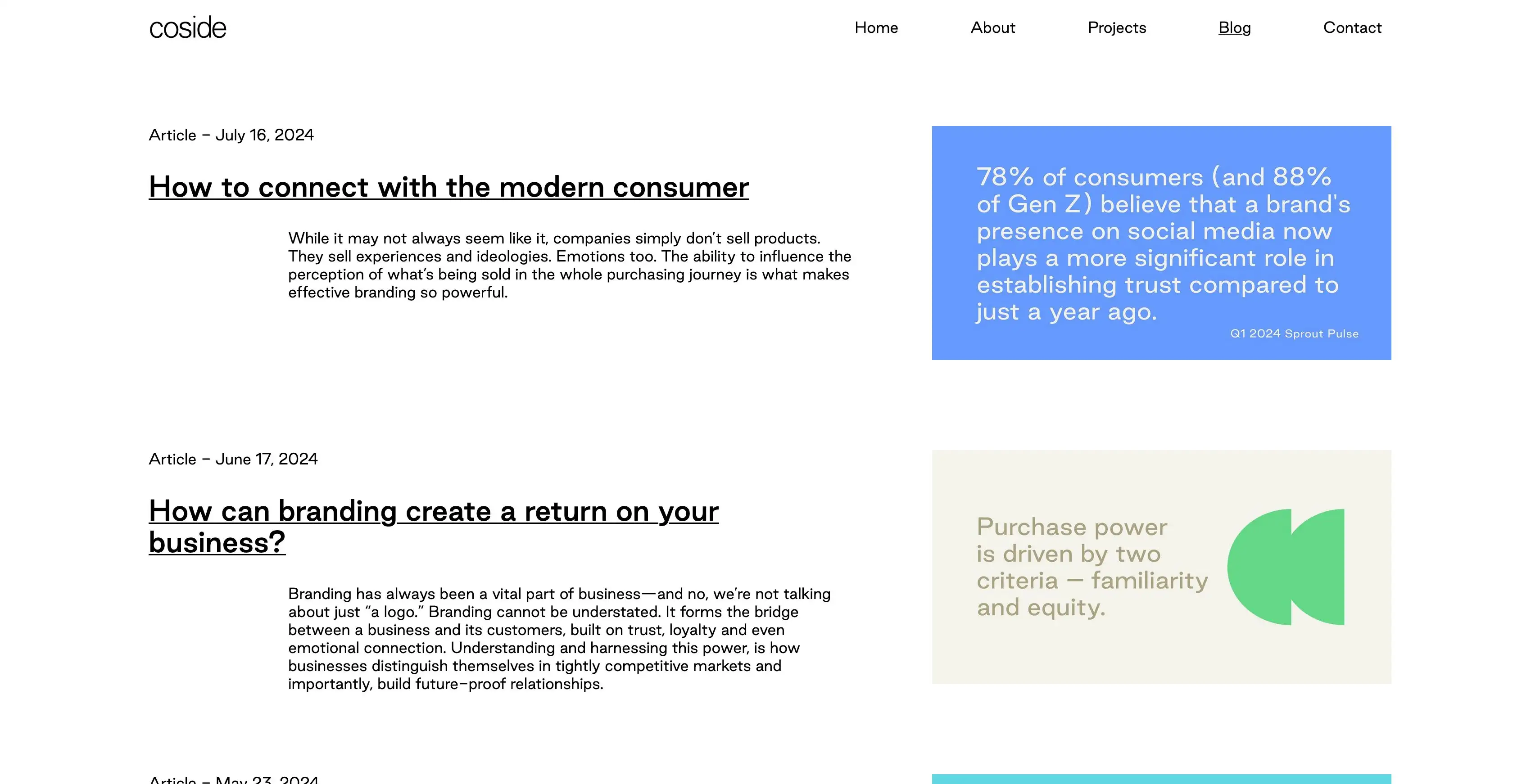 The result is a visually striking, highly interactive website that captivates through bold imagery and engaging video content. A dynamic project showcase and integrated blog provide multiple touchpoints for exploring Coside's work and philosophy, while custom JavaScript interactions create moments of delight throughout the experience. Built in Webflow with meticulous attention to performance despite the rich media, the site balances visual ambition with functional excellence — proving that creative studios deserve creative digital homes that do justice to their craft.